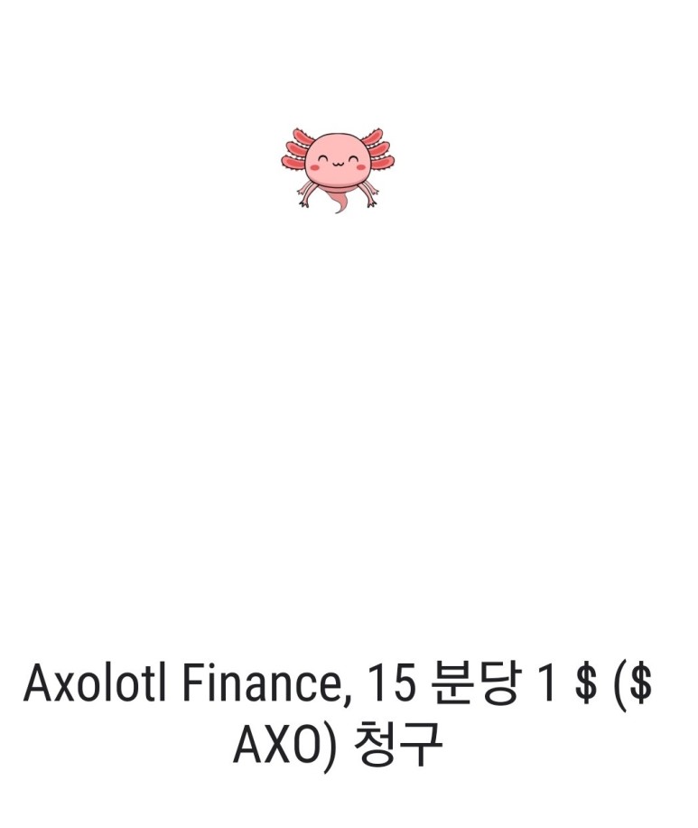 Axolotl Finance, Claim 1$ ($AXO) each 15 minutes