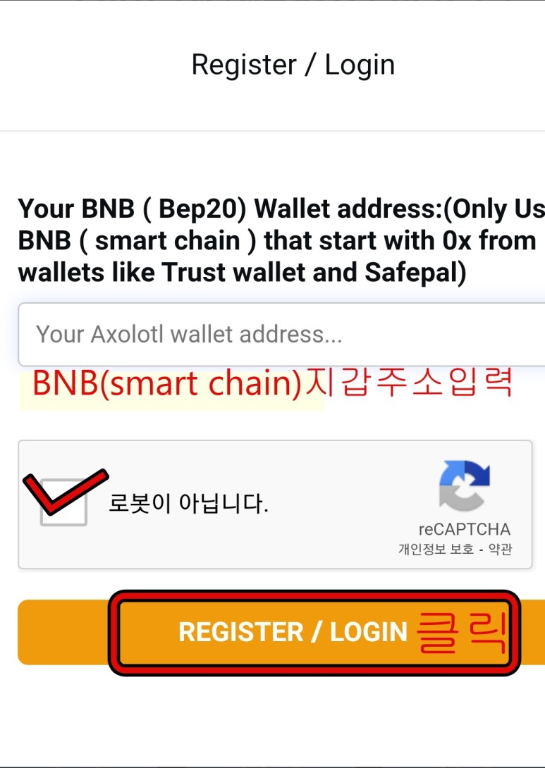 위 주소에 BNB(smart chain) 주소를 입력 하시면 됩니다.