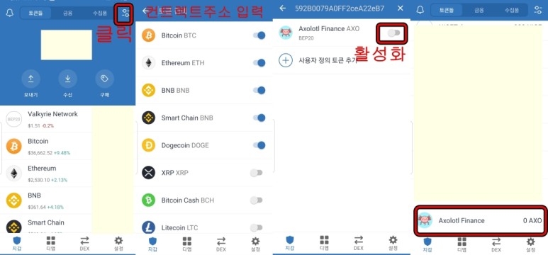 끝으로 인출하시기 전에 트러스트 월렛에 Axo 코인을추가하셔야 합니다.