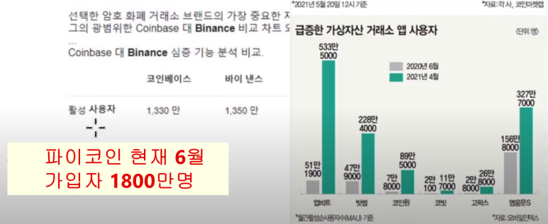 최대 거래소라고 하는 코인베이스 바이낸스의 경우 1300만명 가량의 활성 이용자들이 있습니다.