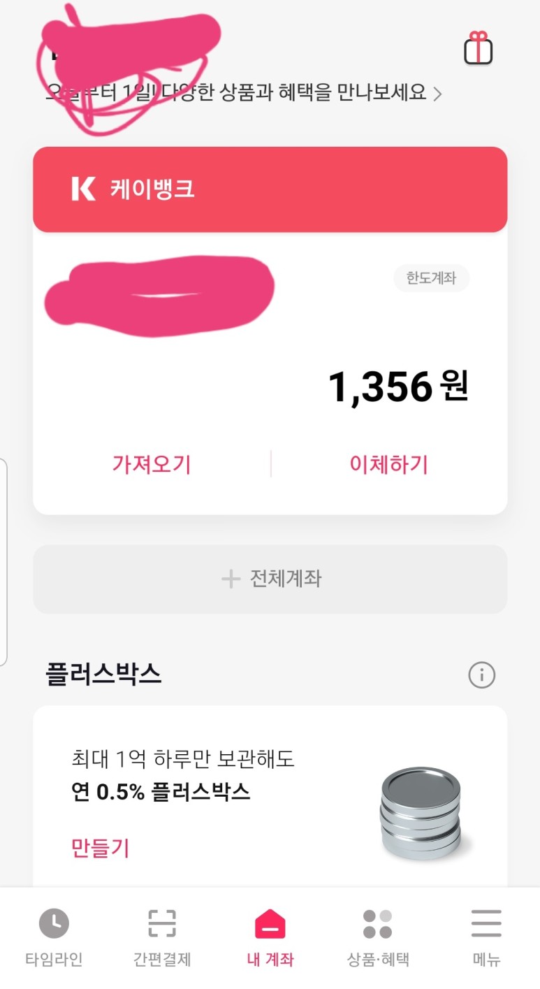 개인정보가 좀 많이 들긴 한데 일단 케이뱅크계좌 개설하는거니